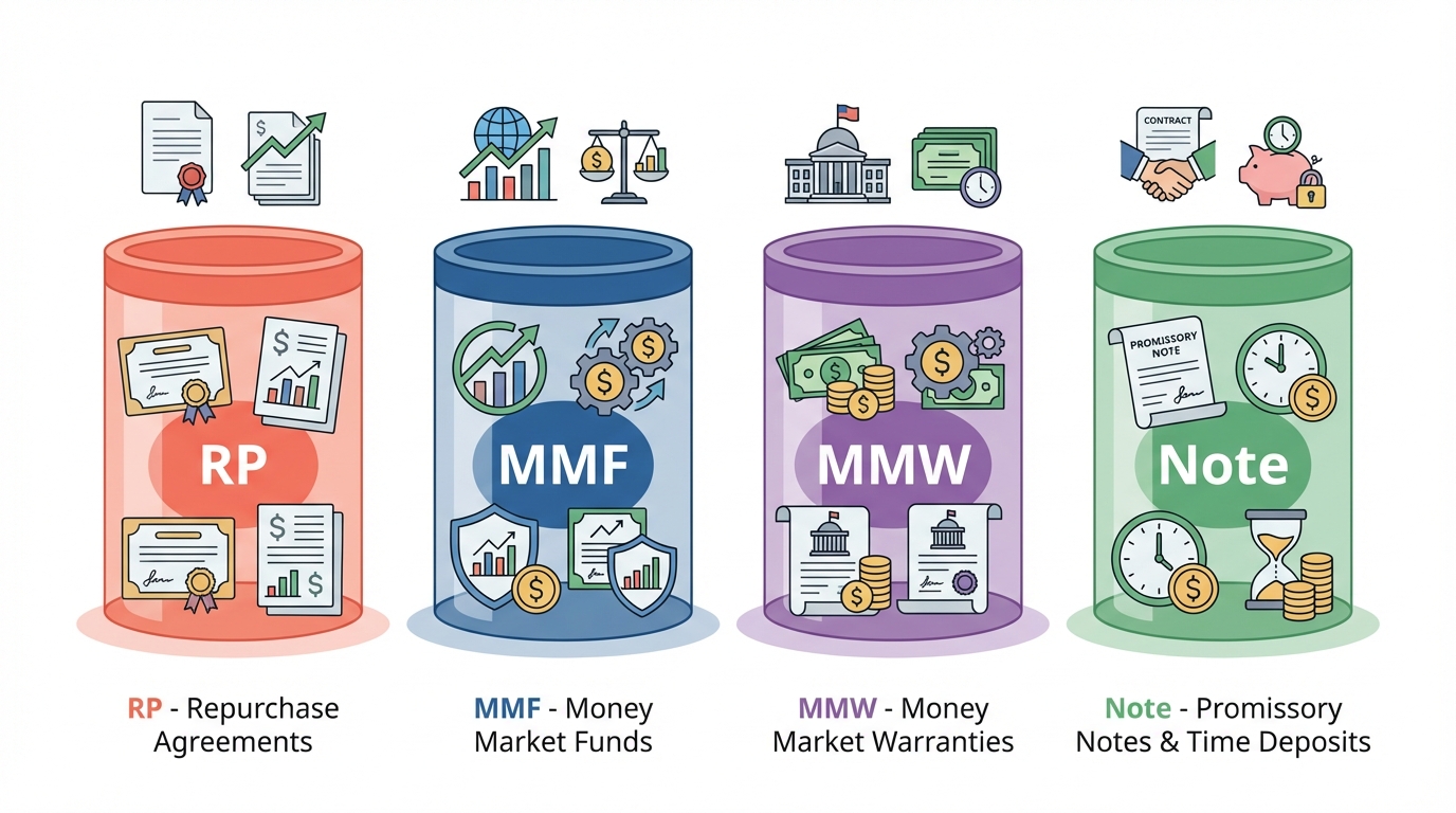 - 투자 대상에 따라 RP형, 발행어음형, MMF형, MMW형, 종금형으로 구분
